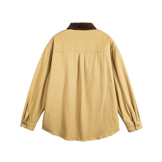 Color-Blocked Collar Multi-Pocket Loose Workwear Shir